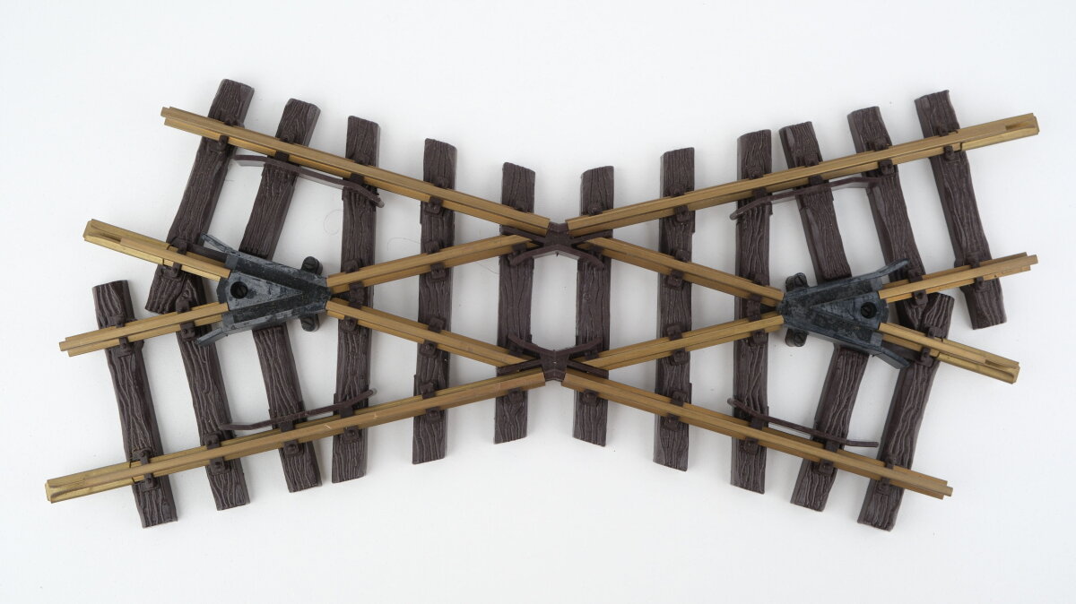 Die LGB 1300 ist eine 30°-Kreuzung für die Gartenbahn im G-Spur-Format. Sie ermöglicht die niveaugleiche Schienenquerung zweier Gleisstränge im flachen Winkel. Das robuste, wetterfeste Bauteil ist für den Außeneinsatz konzipiert und besitzt ein Herzstück aus Kunststoff zur elektrischen Trennung.