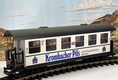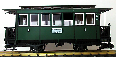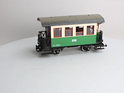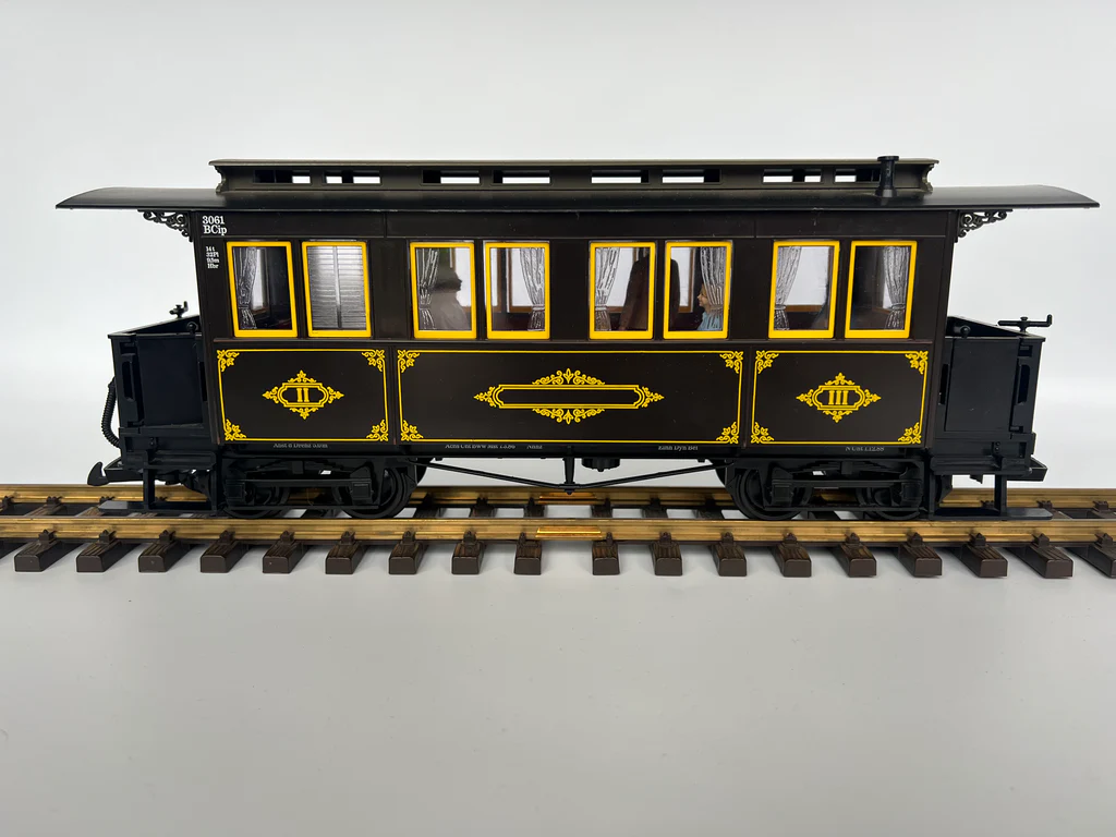 Der LGB 3050 ist ein klassischer Abteilwagen der 3. Klasse in grüner Farbgebung. Das Modell zeichnet sich durch seine charakteristischen, einzeln zu öffnenden Seitentüren zu den jeweiligen Abteilen aus. Mit seiner wetterfesten Konstruktion und den feinen Beschriftungen ist er eine ideale Ergänzung für nostalgische Dampfzüge der Spur G und überzeugt durch langlebige Qualität.
