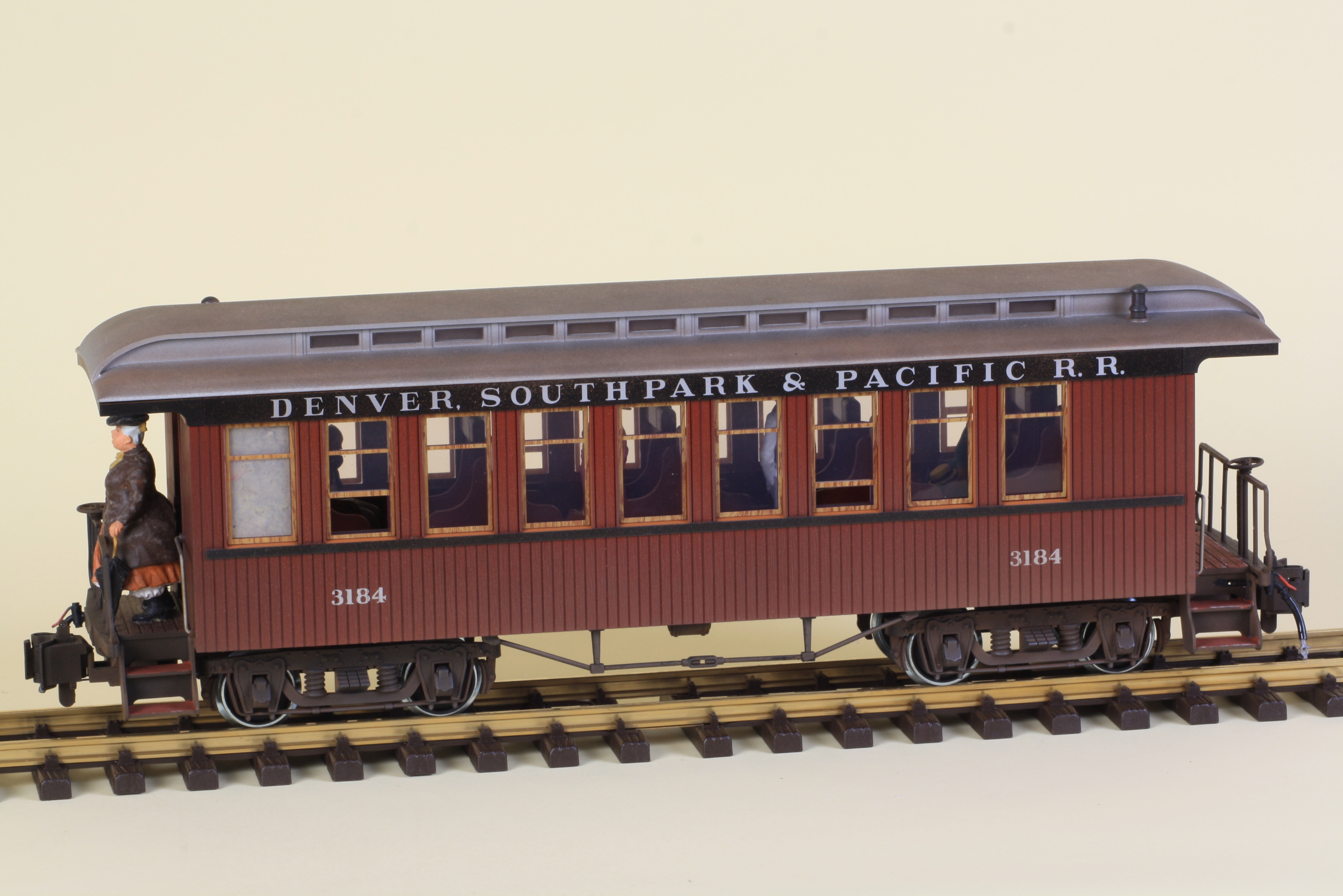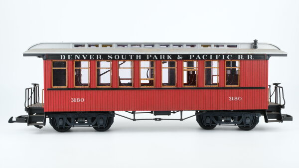 Der LGB-Personenwagen 3082 der Denver & Rio Grande Western ist ein detailgetreues Modell eines klassischen US-Waggons der Epoche III. Der Wagen besticht durch seine charakteristische gelbe Lackierung und verfügt über eine vollständige Inneneinrichtung sowie Türen, die sich öffnen lassen.