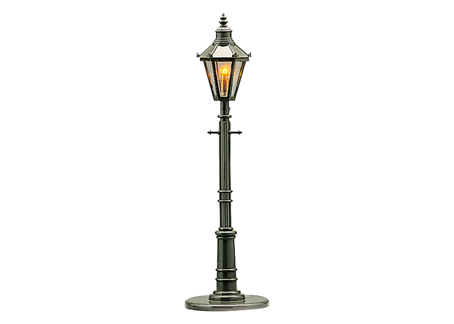 Die LGB-Straßenleuchte 5050 ist ein klassisches Zubehör für die Spur G. Das Modell im historisierenden Design besticht durch seine filigrane Optik und dient der atmosphärischen Beleuchtung von Miniaturanlagen. Mit ihrem warmen Licht setzt diese alte Laterne Bahnhöfe oder Straßenzüge authentisch in Szene.
