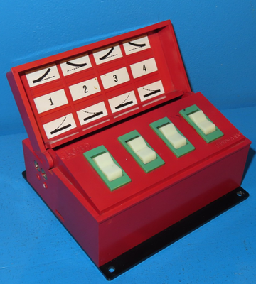 Das LGB-Stellpult 5080 dient der Steuerung von elektrischem Zubehör durch Dauerstrom. Es verfügt über vier voneinander unabhängige Umschalter, mit denen Lichtsignale, Gebäudebeleuchtungen oder Motorantriebe zuverlässig aktiviert werden können. Die Handhabung ist durch einfache Drucktasten intuitiv gelöst.