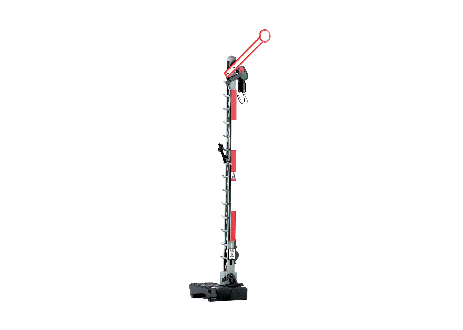 Das zweiflüglige LGB-Hauptsignal mit der Nummer 5094 dient der Absicherung von Gleisbereichen. Es zeigt die Signalbilder Halt sowie Langsamfahrt an. Die Steuerung der beweglichen Flügel erfolgt elektrisch über einen Doppelspulenantrieb, was eine authentische Absicherung von Bahnhöfen und Abzweigungen ermöglicht.