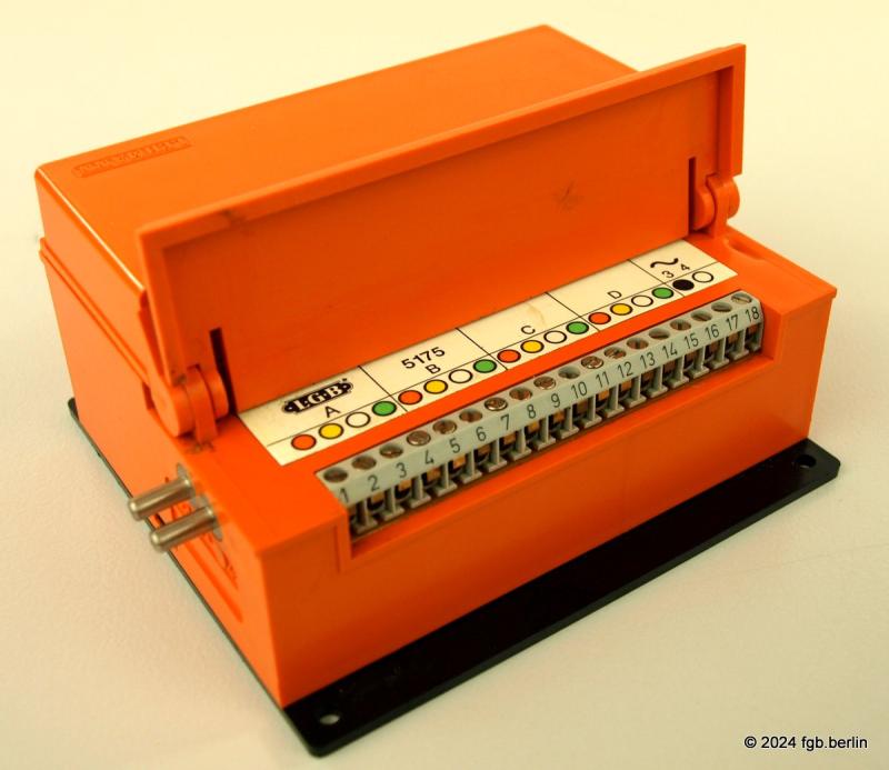 Das LGB-Stellpult 5075 dient der Steuerung von bis zu vier Doppelspulenartikeln wie Weichen oder Signalen. Es liefert kurzen Momentstrom per Tastendruck, um Antriebe sicher zu schalten und Spulenschäden zu vermeiden. Dank seitlicher Steckkontakte lassen sich mehrere Pulte modular anreihen.